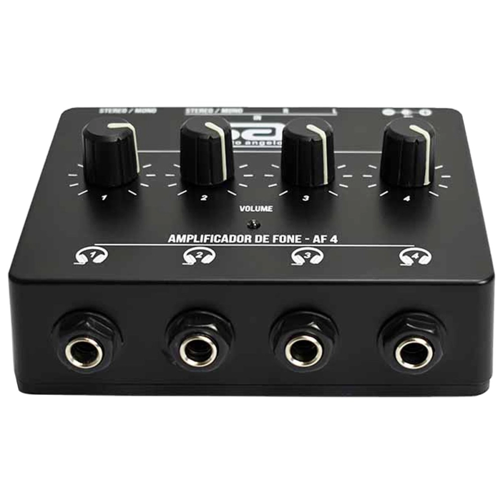 O monitor de áudio profissional permite a distribuição de até dois sinais de áudio para até quatro ouvintes com controle de volume individual. Com excelente qualidade sonora e baixo ruído, o AF4 se torna mais prático o compartilhamento de decisões de mixagem e gravações. Além disso, pode ser utilizado como: retorno para ensaios, lives e também na gravação de podcasts. O seu grande diferencial é a chave comutadora mono/estéreo, permitindo tanto trabalhar com P10 mono quanto P10 estéreo, além de uma entrada RCA R/L.