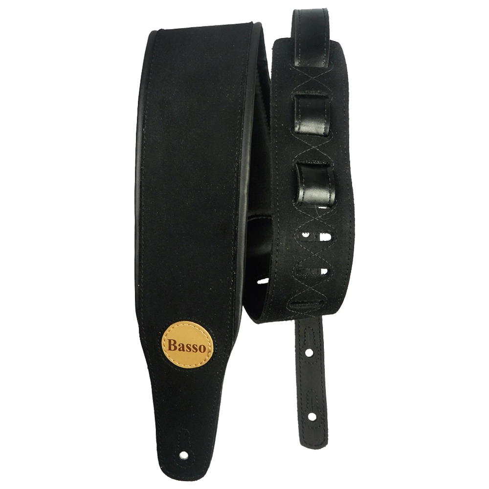 Correia Basso FB-01 Couro Camurça Preta Para Baixo 8,5 cm de Largura