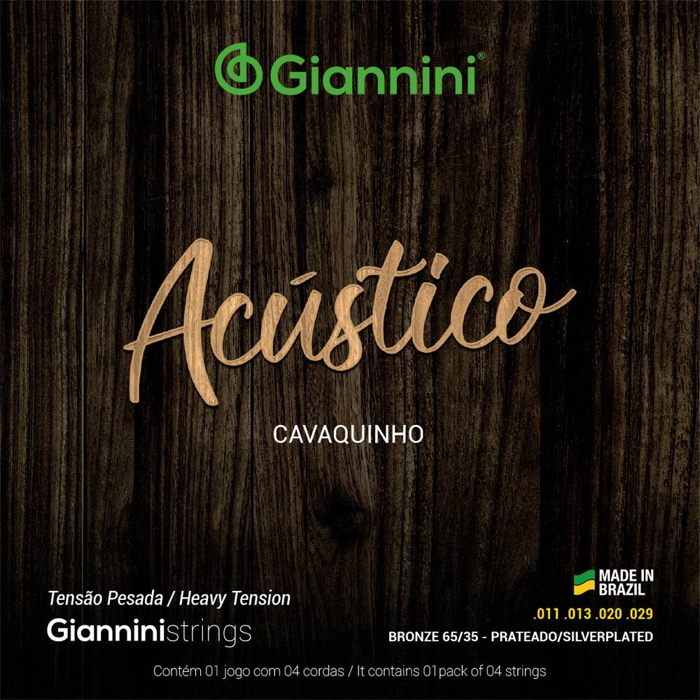 Os encordoamentos Giannini da série Acústico são perfeitos para você conseguir o melhor som, limpo e encorpado, do seu instrumento. O encordoamento para cavaquinho Acústico GESCPA é indicado para músicos que gostam de um encordoamento com uma pegada mais pesada.