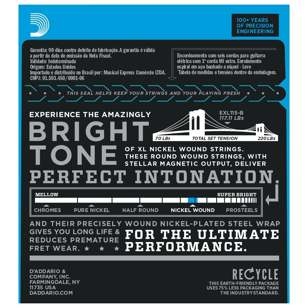Encordoamento Para Guitarra Daddario 010 EXL110-B C/ Mi Extra