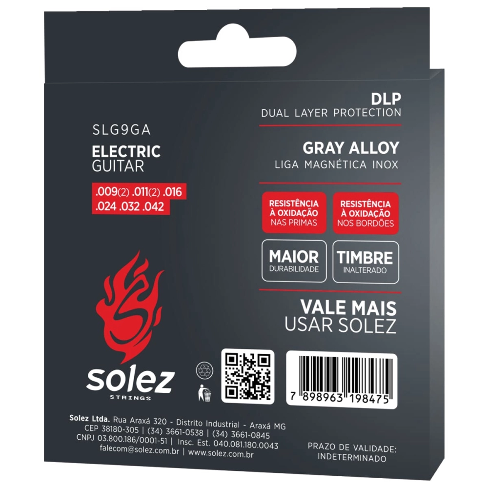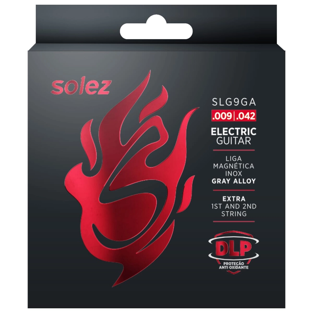 Encordoamento Para Guitarra Solez 009 Stainless Steel Gray Alloy SLG9-GA. Acompanha Mi e Si Extra.