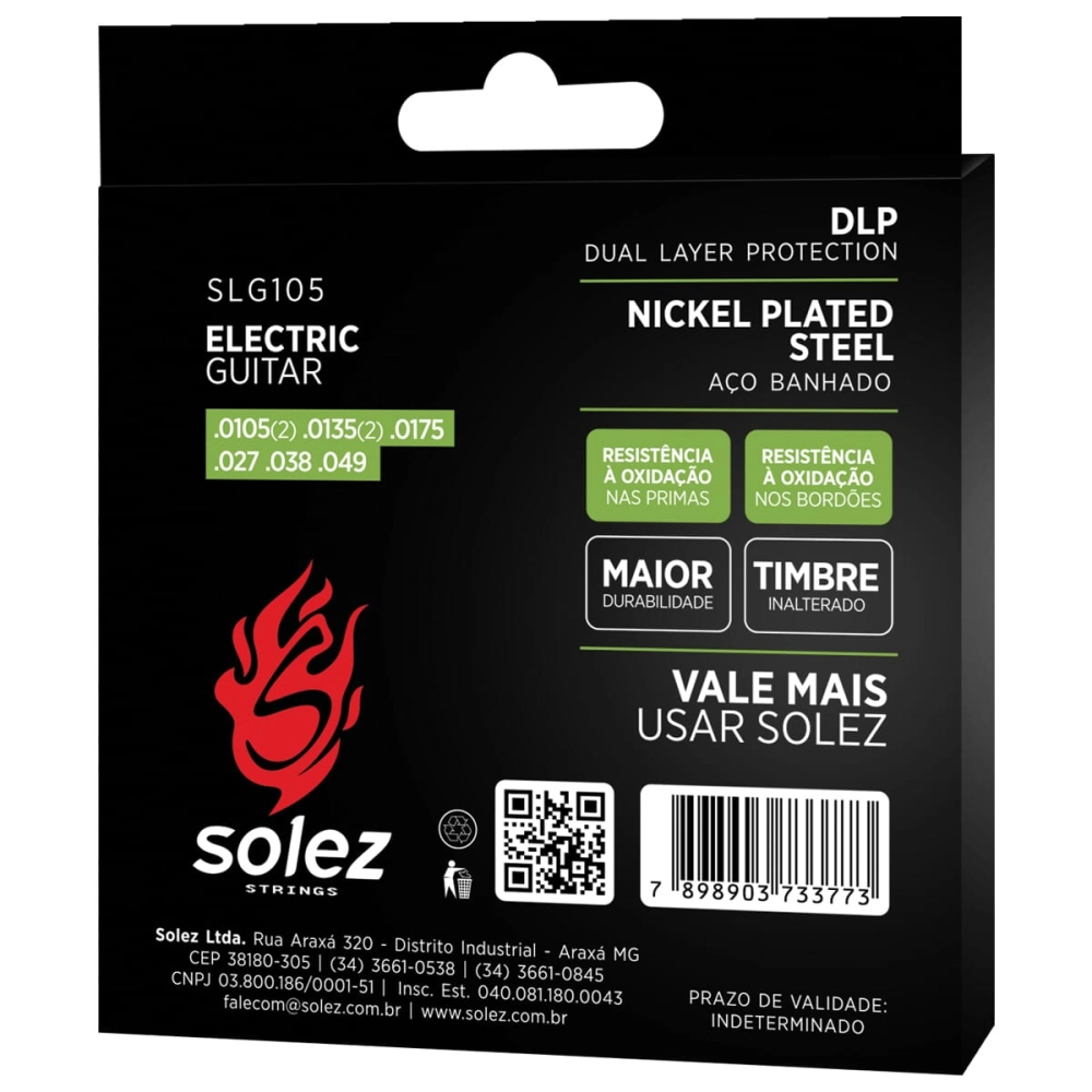 Corda Solez com DLP (Dual Layer Protection), sistema de proteção que aumenta a durabilidade das primas apresenta timbre com corpo e brilho, ótima pegada e maciez. Indicada para guitarristas que gostam de flexibilidade e tocabilidade leve com um pouco mais de corpo e volume sonoro.