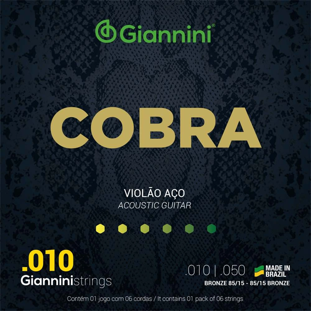 A série Cobra apresenta toda a versalidade dos encordoamentos Giannini. O encordoamento para violão aço Giannini Cobra GEEFLE é revestido com Bronze 85/15, indicado para músicos que gostam de encordoamento com um som brilhante, encorpado e com ótimo sustain.