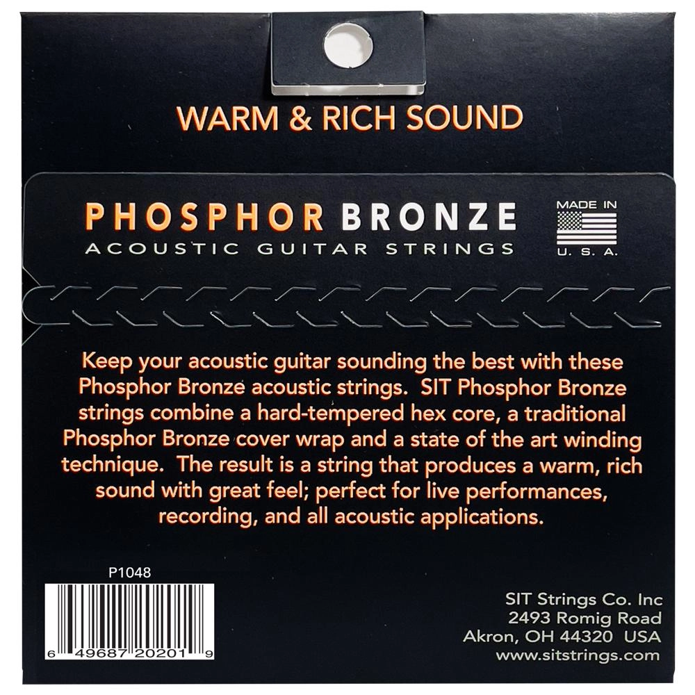 As cordas Phosphor Bronze da S.I.T. são compostas de 92% de cobre e 8% de Zinco, uma cobertura tradicional Phospor Bronze enroladas sobre um núcleo hexagonal temperado. São perfeitas para gravações em estúdios e apresentações ao vivo onde se deseja obter um som quente e rico de ótima sensação.