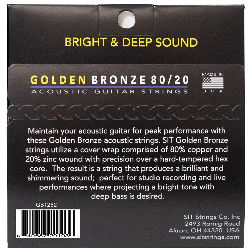 As Cordas Golden Bronze da S.I.T são compostas de 80% de cobre e 20% de Zinco, enroladas sobre um núcleo hexagonal temperado. São projetadas para um som mais brilhante e nítido. São perfeitas para gravações em estúdios e apresentações ao vivo onde se deseja projetar um tom brilhante e com graves profundos.