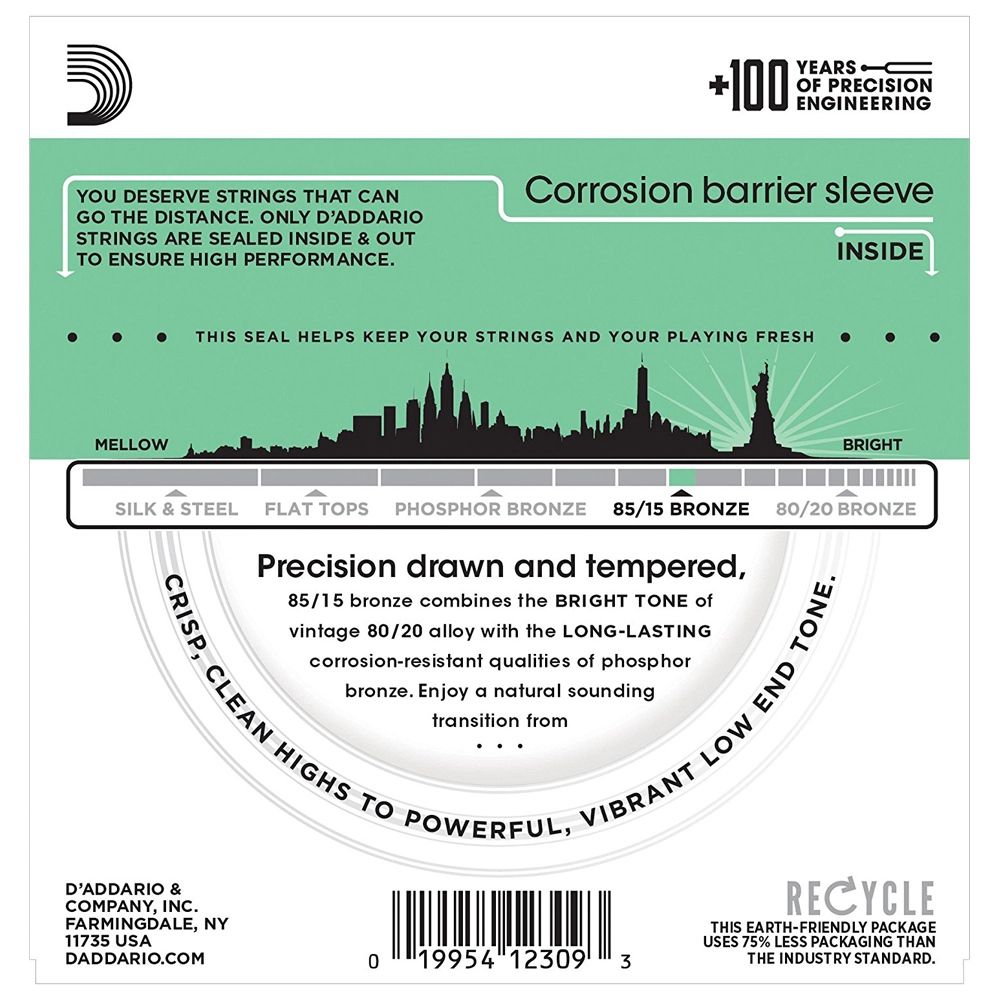 O encordoamento EZ920 é um dos encordoamentos mais vendidos da D'Addario, produzido em bronze americano 85/15, que é ideal para violões acústicos por possuir um timbre cristalino mais controlado. Todas as cordas D'Addario são feitas com alma hexagonal, gerando excelente entonação e durabilidade.