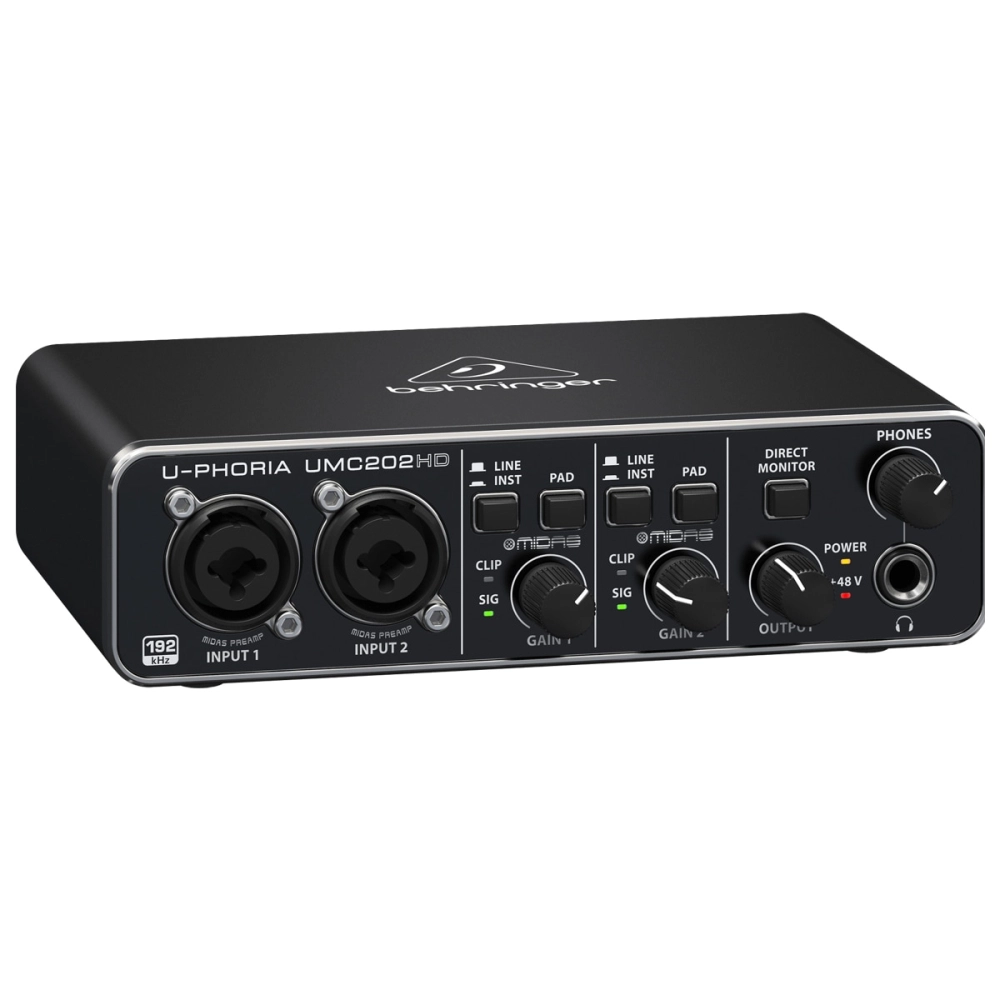 A Behringer U-PHORIA UMC202HD é uma interface de áudio USB 2.0 de 2 entradas e 2 saídas, desenvolvida para oferecer gravações com qualidade profissional no seu estúdio ou setup móvel. Compatível com Windows e macOS, este modelo é ideal para músicos, produtores, podcasters e criadores de conteúdo que buscam desempenho confiável e som cristalino.