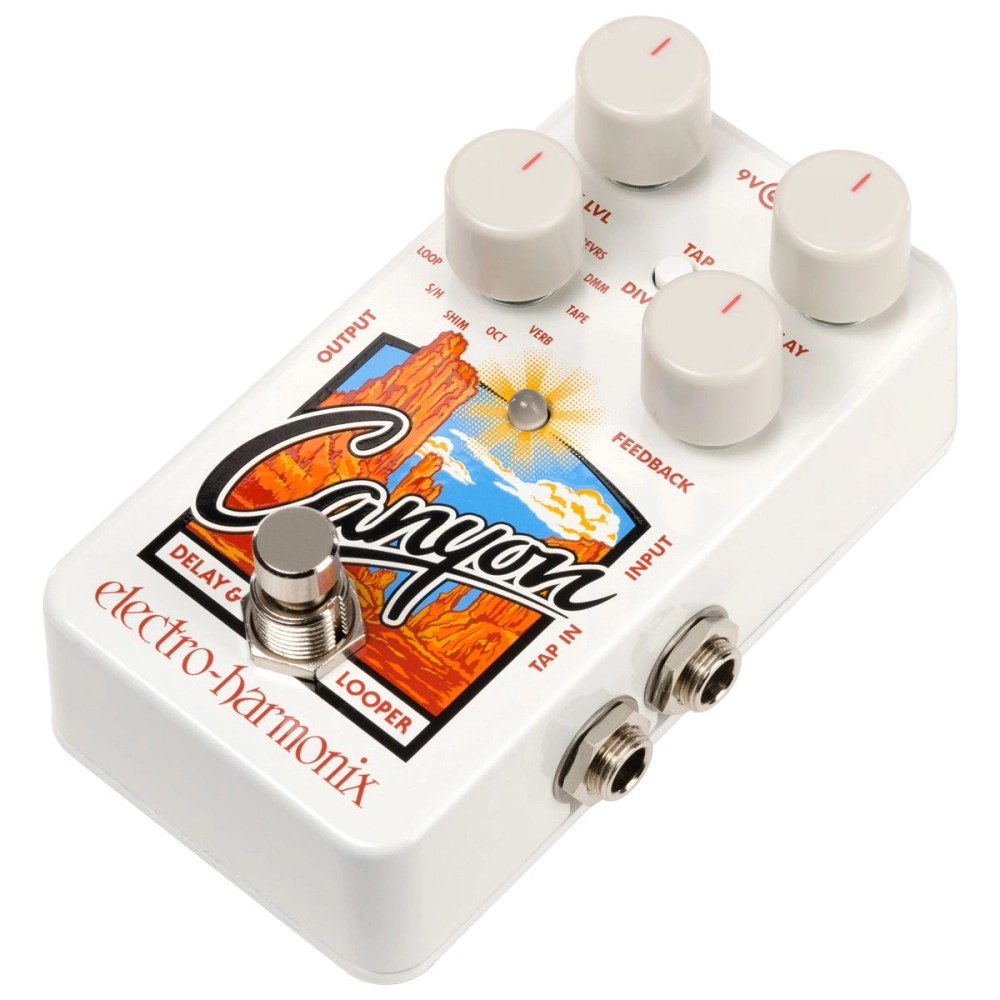 O EHX Canyon é um pedal Delay & Looper compacto, mas não deve nada para pedais que ocupam mais espaço na pedaleira. O pedal conta com uma coleção de efeitos, ao todo são 10 efeitos delay e um looper completo, sendo os Delays: Delay de fita, Delay reverse e modulado, Delay oitavado em cascata e shimmer. Tap interno ou externo com divisões, com o botão “mod” parâmetros secundários permitindo maior controle sobre as modulações!