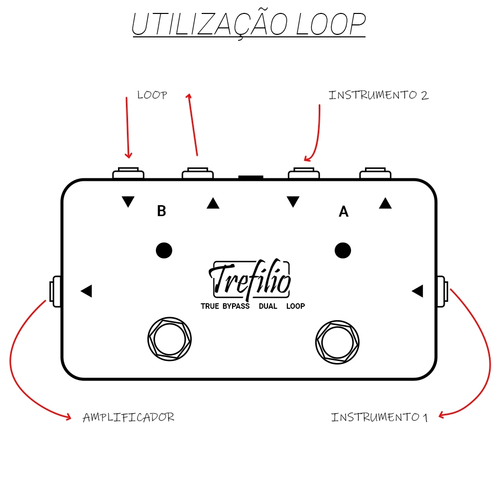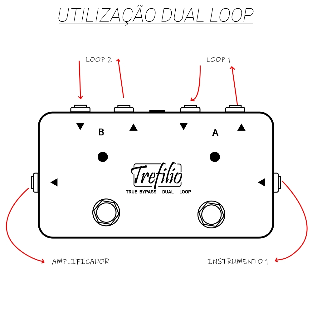 Dual Loop:Possibilita a inserção de dois loops de efeitos true-bypass (A e B). Essa ligação é recomendada para cadeias de pedais que possuam by-pass eletrônico (como pedais Boss, Ibanez, Behringer, etc.) ou Split Bypass (Cry-Babe, pedais vintage, etc.).