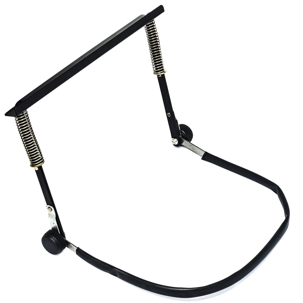 Construída em metal, possui molas grossas e firmes para ajustar a largura no bocal e evitar que a gaita escape. Possui 2 tarraxas para regulagem de distância entre a gaita e a boca. O apoio é revestido por uma borracha que ajuda o apoio a ficar firme em suas costas e ombros evitando ferimentos.