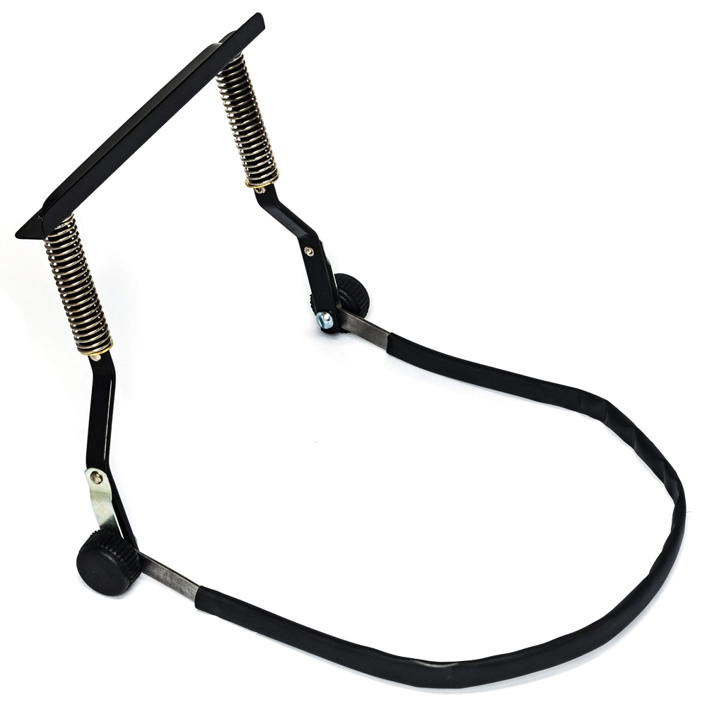 Construída em metal, possui molas grossas e firmes para ajustar a largura no bocal e evitar que a gaita escape. Possui 2 tarraxas para regulagem de distância entre a gaita e a boca. O apoio é revestido por uma borracha que ajuda o apoio a ficar firme em suas costas e ombros evitando ferimentos.